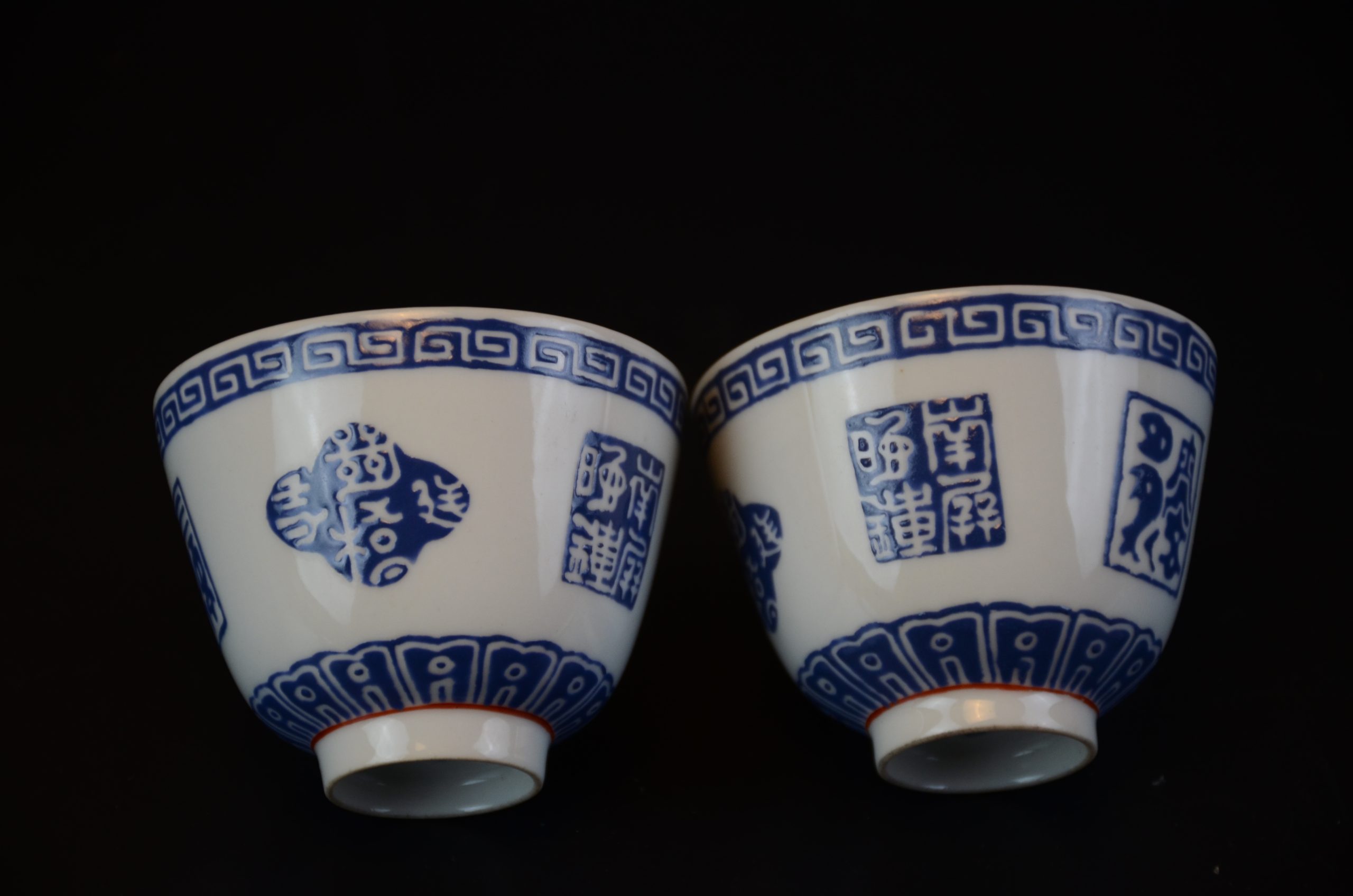 清,大清乾隆年制款,蓝料彩杯一对。Qing dynasty, Seal marks of Qianlong,